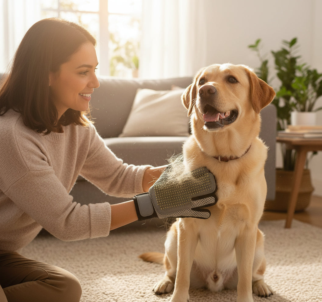 - 4-Daily pet brushing and massaging.Easy to use around legs, tail and neck. Adjustable wristband for a comfortable fit.